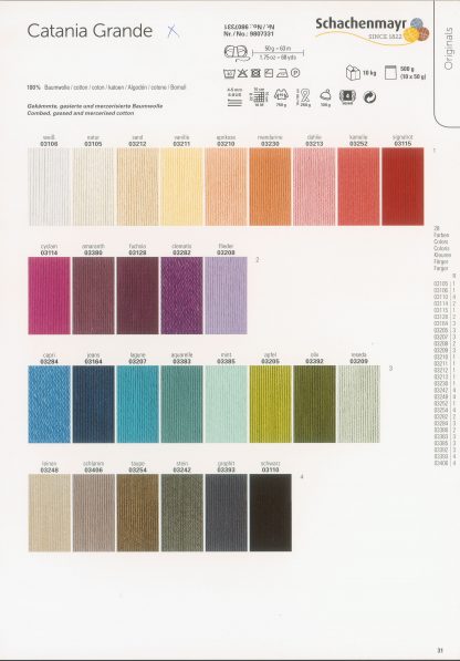 Väri | aprikoosi 3210, farkunsininen 3261, lila 3208, lohenpunainen 3252, oranssi 3281, petrooli 3391, punainen 3390, punalila 3282, ruosteenpunainen 3388, vaalea lime 3206, valkaistu 3106, vanilja 3211, vihreä 3241 |