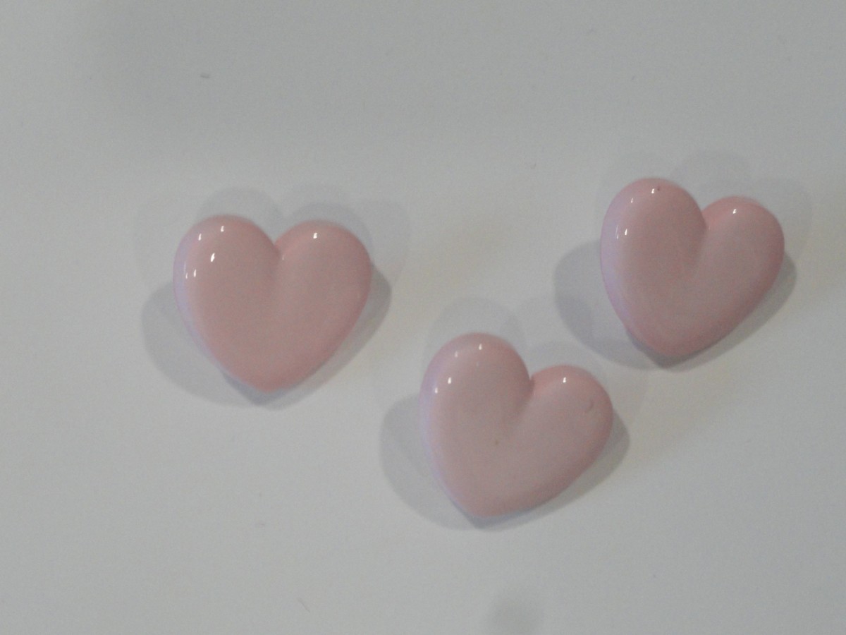 Kannallinen muovinappi sydämenmuotoisena. Kaksi kokoa 12 mm ja 15 mm.